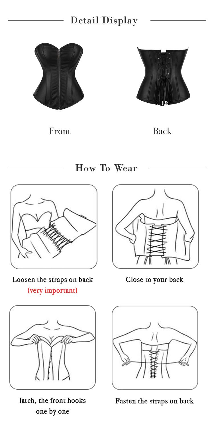 • Faux Leather Material: This corset top is crafted from bonded leather and faux leather, offering a unique steampunk look.