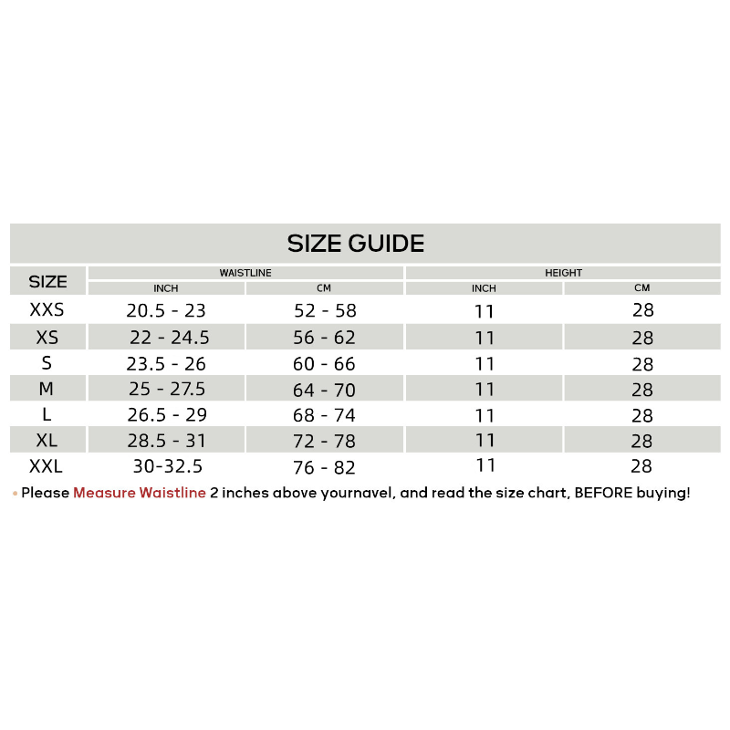 - Size Selection Instructions - Measure your waist at its slimmest part and compare it with our size chart: XXS (20.5 - 23 inches), XS (22 - 24.5 inches), S (23.5 - 26 inches), M (25 - 27.5 inches), L (26.5 - 29 inches), XL (28.5 - 31 inches) ,and XXL (30 - 32.5 inches). MISTHIN women waist trainer is designed with higher compression, so it will feel quite snug. If you’re between sizes, we recommend choosing the larger size for added comfort.